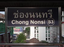 チョンノンシー駅はシーロム通りからサトーン通りへとつうじるナラティワート通りにあります。駅の周りはサラデーン駅から続くビジネス街のため、駅の使用者は主に会社員で、朝夕のラッシュ時には日本程ではありませんが、電車内はぎゅーぎゅー詰め状態となります。